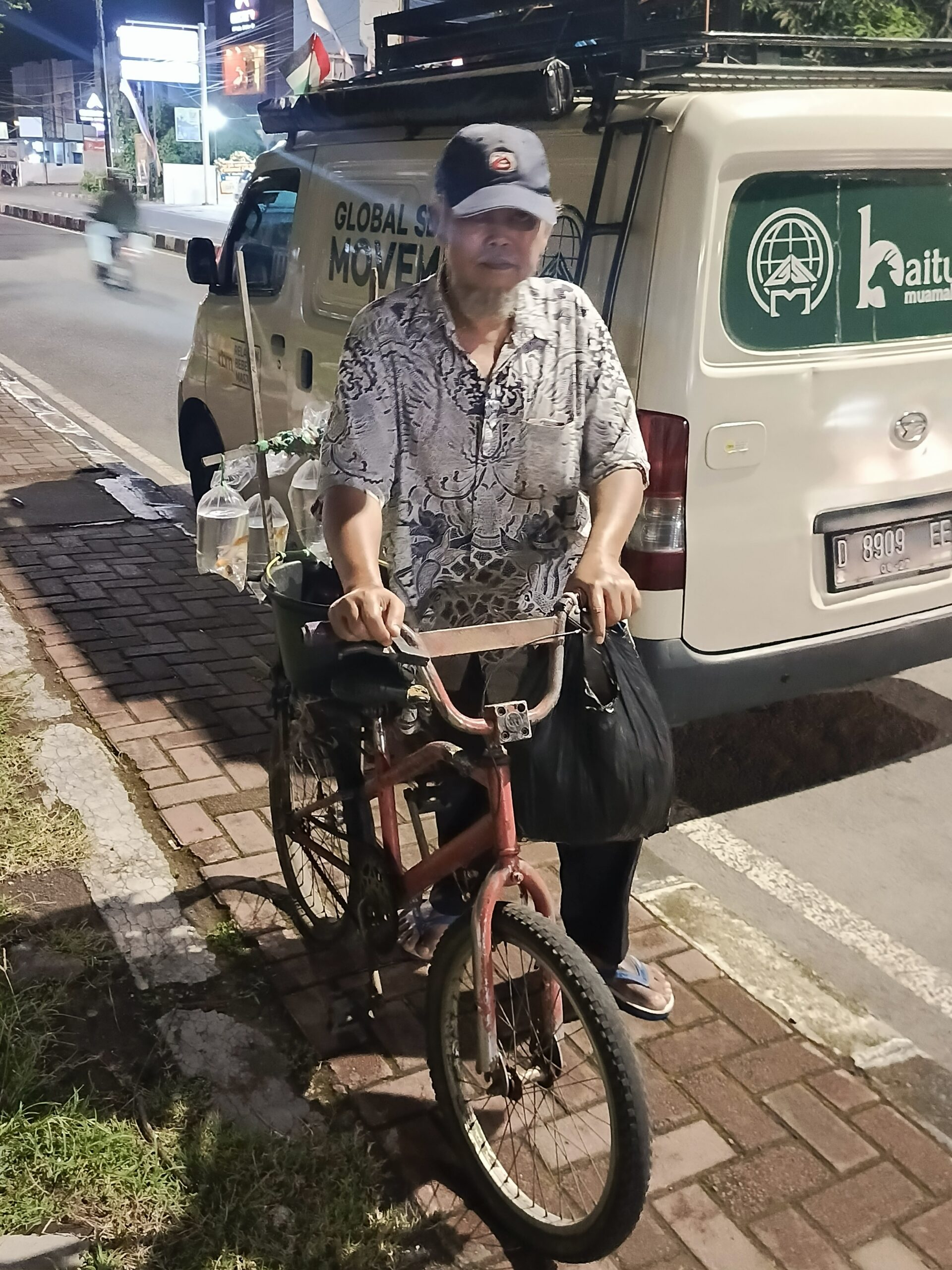Sahabat, bayangin di usia setua itu, Abah masih harus keliling nuntun sepeda di jalanan, dengan kaki sakit dan penglihatan cuma sebelah. Kalau bukan kita yang bantu, siapa lagi yang peduli sama beliau?