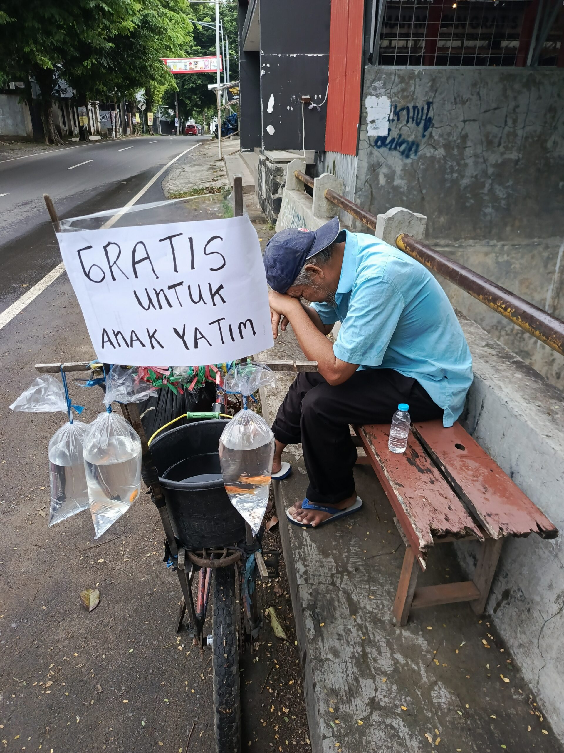 Setelah empat tahun terbaring, Abah pelan-pelan berusaha bangkit. Meski kakinya udah gak sekuat dulu, Abah tetap maksa buat kerja dengan jualan ikan hias keliling pakai sepeda tua.