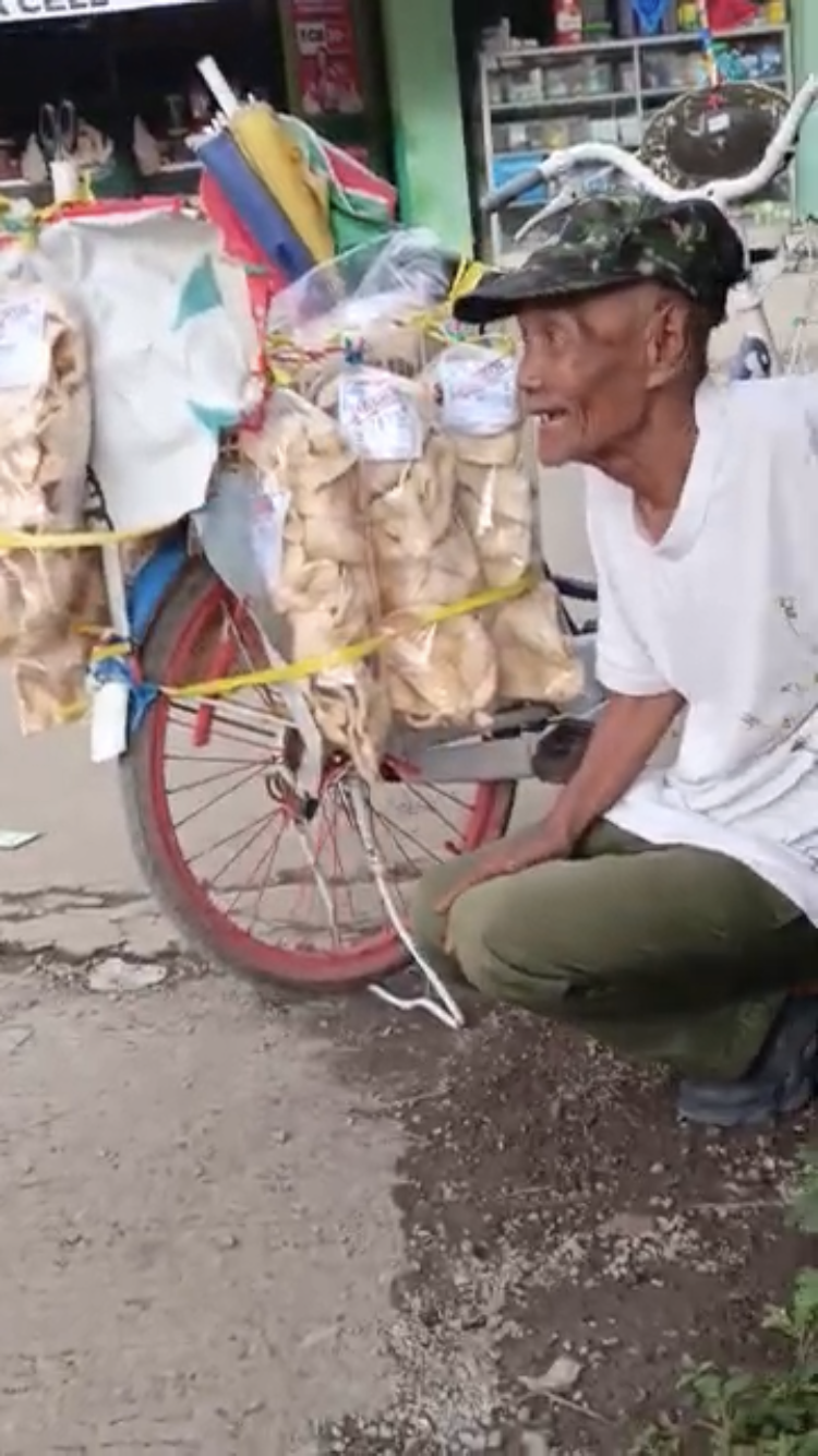 Beliau adalah Abah Fatah (82 tahun), seorang lansia pencari nafkah yang masih harus berkeliling menjual kerupuk dengan cara didorong menggunakan sepeda tua. Sepeda itu bukan lagi alat transportasi, melainkan pengganti alat bantu berjalan, karena kaki Abah sudah terlalu lemah untuk melangkah tanpa pegangan