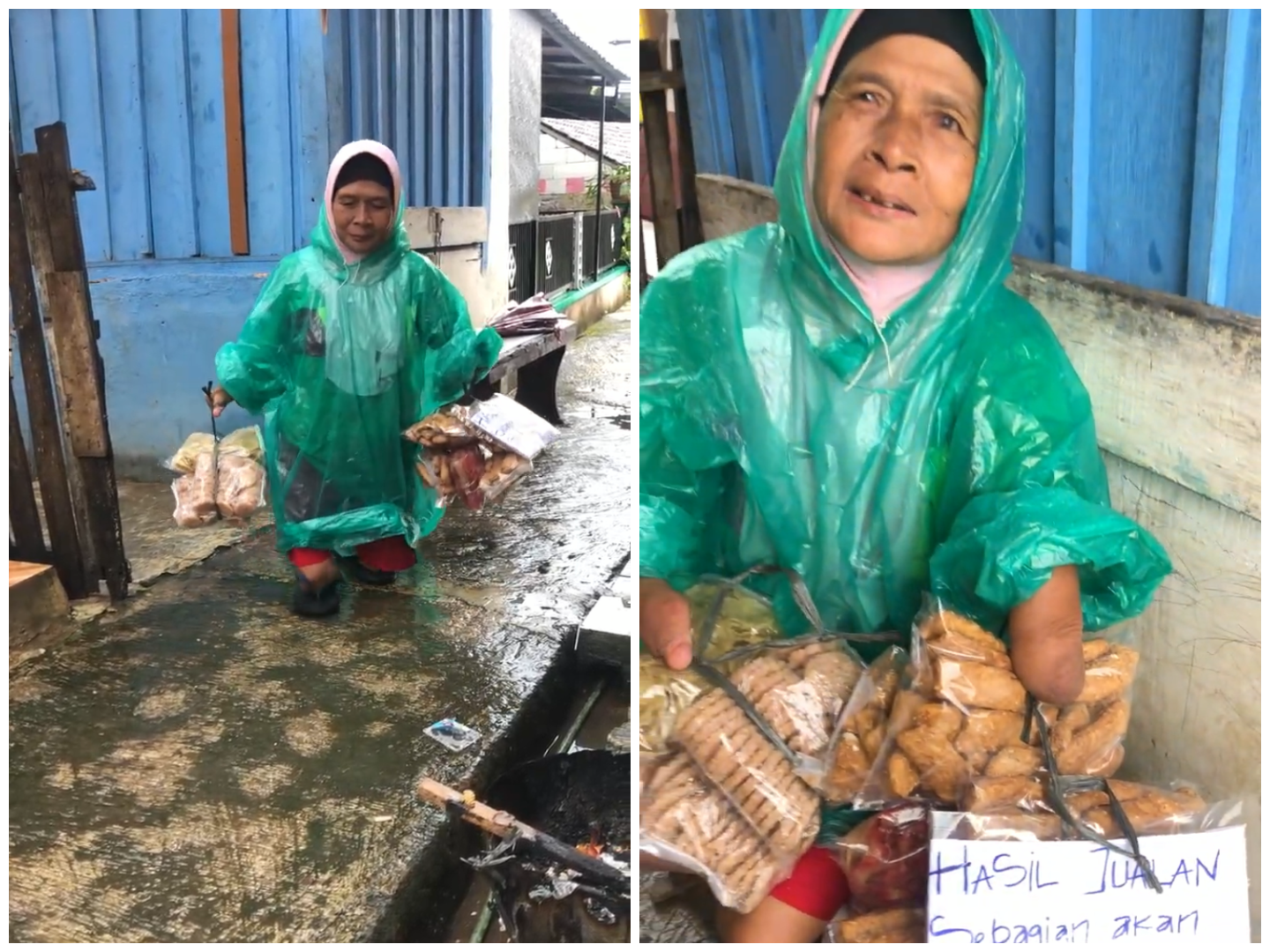 Sobat Rubin, pernahkah kamu membayangkan! dengan kaki yang tak sempurna, tubuh yang terbatas sejak lahir, di usia 59 tahun masih memilih untuk berjalan keliling 3 kilometer setiap hari demi berjualan kue kering?
