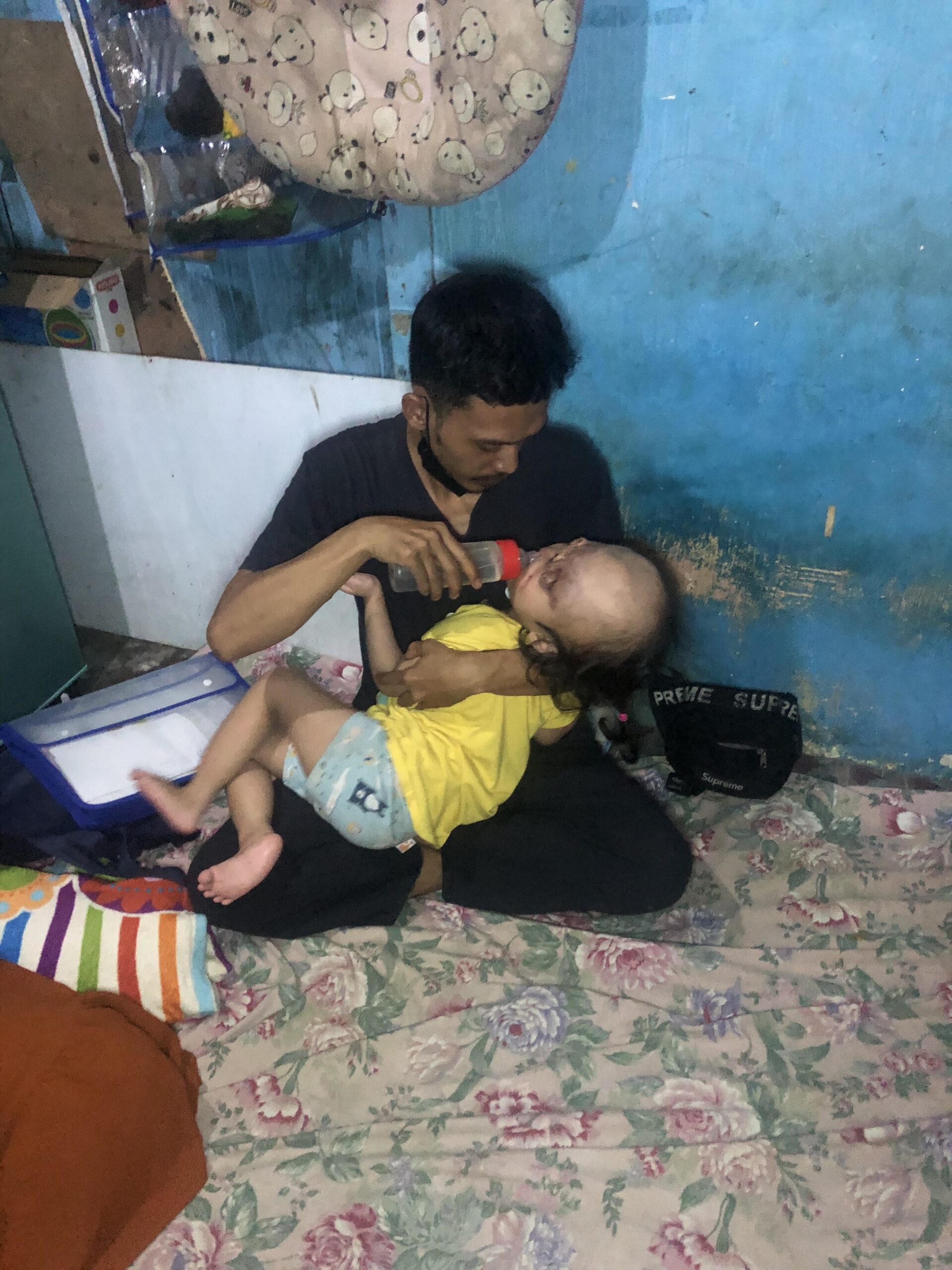 Pak Ozi, ayahnya Zania hanya bekerja sebagai ojol dan bekerja serabutan di toko stiker motor dengan penghasilan yang tak lebih dari Rp70.000 sehari, itupun kalau Pak Ozi bekerja. Jika harus mendampingi Zania berobat kerumah sakit, maka tidak ada penghasilan sama sekali.